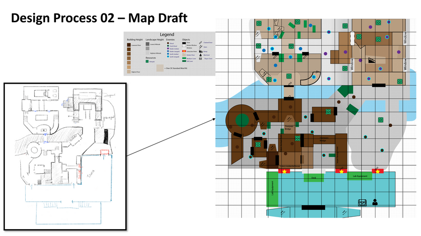 I created level maps and system documents to showcase the intended design progression prior to development.