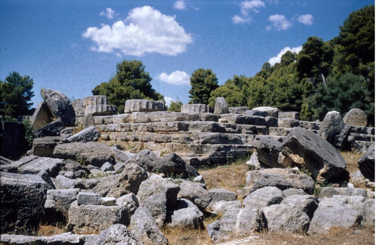 Figure 7 Temple of Zeus. From Northeast. Photograph. Olympia, Greece. Bryn Mawr College. Figure 8 Patay-Horváth, A. 2013. “The virtual 3D reconstruction of the east pediment of the temple of Zeus at Olympia an old puzzle of classical archaeology in the light of recent technologies”. Digital Applications in Archaeology and Cultural Heritage 1: 12-22.